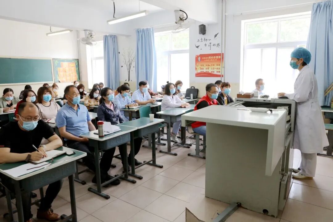 培训会首先由镇社区卫生服务中心的芦玉香主任和李倩主任为全体教职工讲解疫情防控的相关知识,针对校园内通风消杀工作、学生进校及上课期间出现发热、呕吐等现象的应急处置进行了详细说明,杜绝出现消杀不当、操作不规范等现象,切实有效保障师生身体健康。镇社区卫生服务中心全力做好复课期间防疫工作,郑强主任带领中心全体班子成员参会,为复课提供坚强的医务保障,并安排5月18日为每所小学配各一名卫生服务中心大夫到学校驻校做好疫情防控。