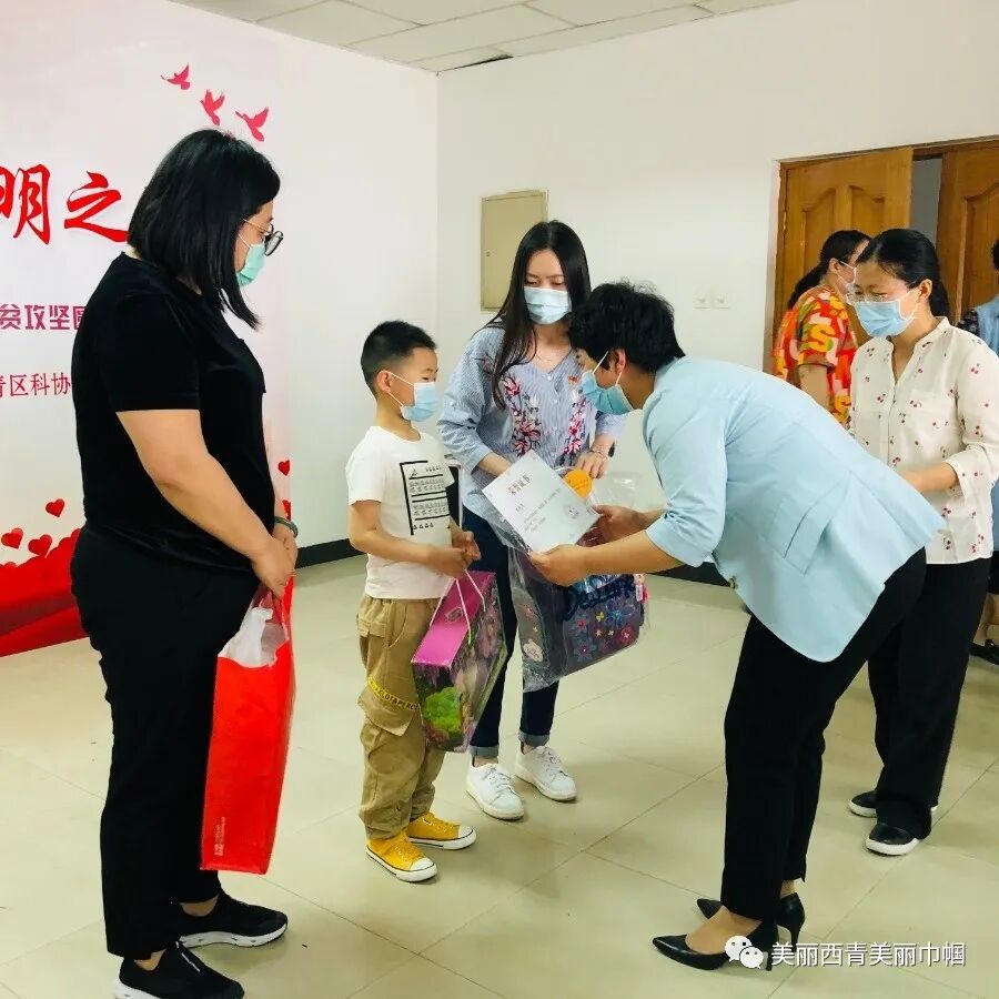 作为对爱心家庭的回馈,西青区科协设置科技体验区开展亲子科普活动。