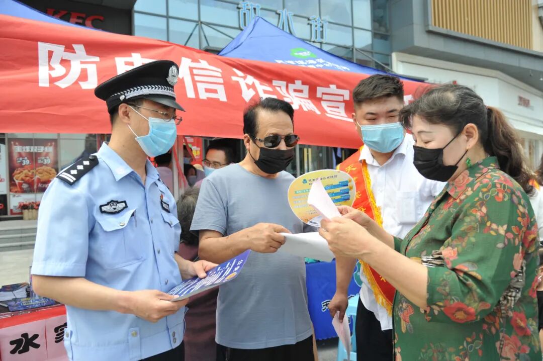 为预防和减少辖区电信网络诈骗案件的发生,维护群众财产安全和切身利益,5月29日上午,公安西青分局中北派出所联合天津滨海农村商业银行中北支行在西青区中北镇碧水家园社区开展防范电信网络诈骗宣传活动。
