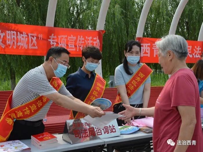 近日,区普法办、创文办、司法局、检察院联合张家窝镇,在西青法治公园组织开展“推进法治宣传教育 共创全国文明城区”专项法治宣传活动,不断提升广大居民的法律素质和文明程度,共创全国文明城区。