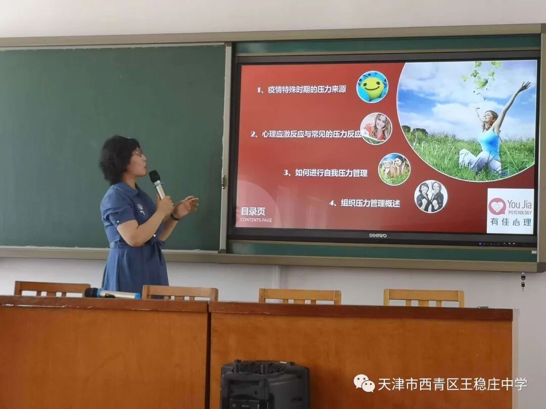 为加强王稳庄中学教师心理健康建设,缓解老师因工作、生活等方面带来的消极情绪与压力,关爱教职工的身心健康,促使教师更好地投入到工作和生活中。日前,王稳庄中学邀请天津市委党校、有佳心理特聘专家、国家二级心理咨询师、中国科学院心理研究所EAP心理学博士,王东燕老师到校进行教师心理培训,收效良好。