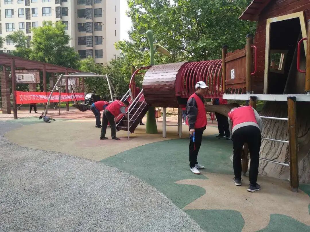 中北镇假日润园社区组织老少志愿者开展了社区环境卫生清整志愿活动,社区里的爷爷奶奶和小朋友们主动加入到活动中,大家身穿红马甲,拿着抹布擦拭社区内的儿童游乐设施,并进行了消毒,为孩子们营造了一个安全、整洁、卫生的游乐环境,更为社区居民群众树立了典范,为创文明城区再添浓厚氛围。