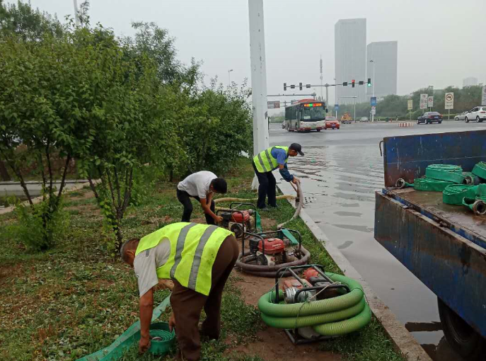 26日晨,为应对强降雨造成的区内大量积水,应急排水组迅速前往辖区路段巡查,出动防汛人员80余人次,防汛车辆24余辆,临时排水泵32台,对友谊南路沿线、民和道、业盛道、永旺等附近等10余处低洼路段进行排水作业。