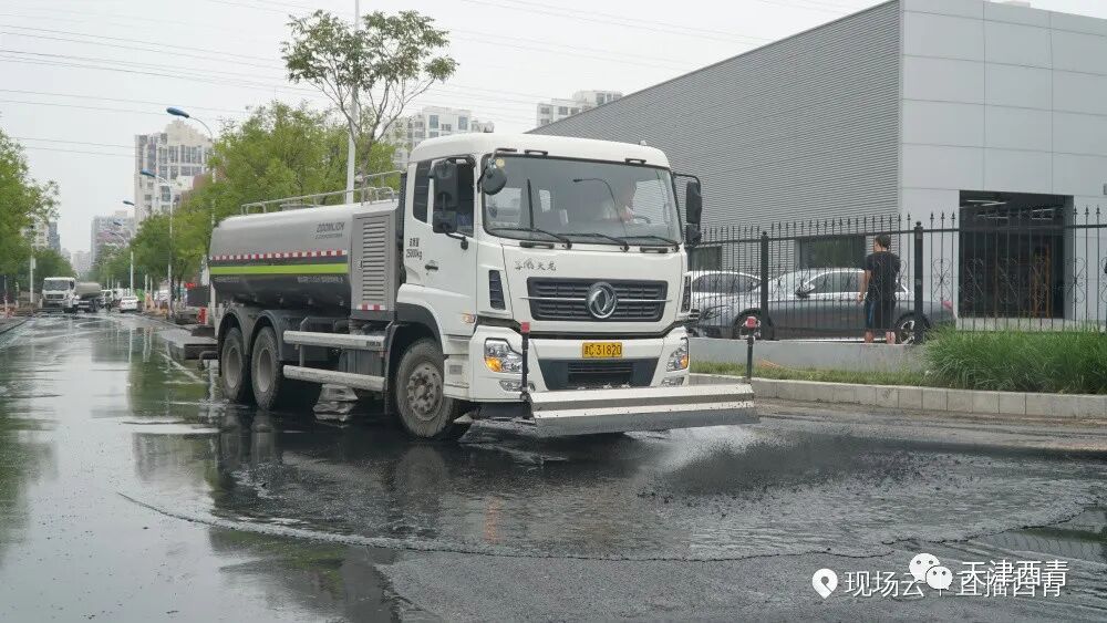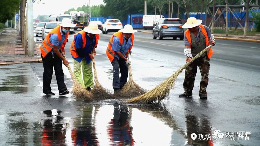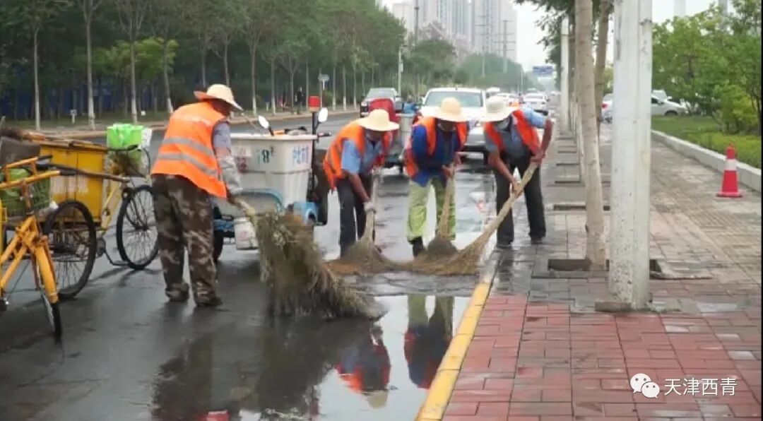 面对恶劣天气影响,西青区各街镇快速反应,积极应对。中北镇第一时间组织人员对镇域内绿化进行巡查,对倒伏树木进行扶正,对折枝进行清理,道路保洁人员对道路积水地区进行推水作业,通过机械化冲洗,保洁员配合,及时疏通部分低洼路段积水,确保行人、车辆能顺利通行,保证居民出行安全。