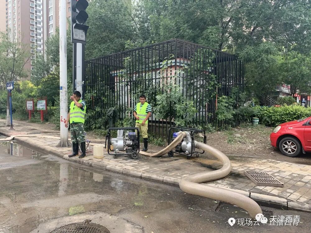 在西青区李七庄街津涞道和瑶环路交口,这个区域也是西青区汛期比较容易积水的路段,工作人员从今天凌晨一点开始,出动吸污车和吸水泵,不间断进行排水,目前,随还有部分积水,但基本不影响群众出行。