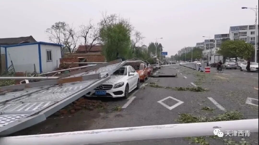 昨晚22点41分开始,西青区各街镇和开发区自西北向东南相继出现了强对流天气,这次强对流天气给我区造成了极端气象灾害,我区先后出现了强雷暴,短时强降水,短时大风和冰雹等气象灾害。其中,我区最大风力出现在张家窝镇,极大风力达到13级,各个街镇普降冰雹。大风和冰雹灾害均为50年一遇,我区市容环境和农业设施受损严重,今晨,西青区各相关职能部门迅速启动应急预案,对损毁市容和农业设施进行修复和自救。
