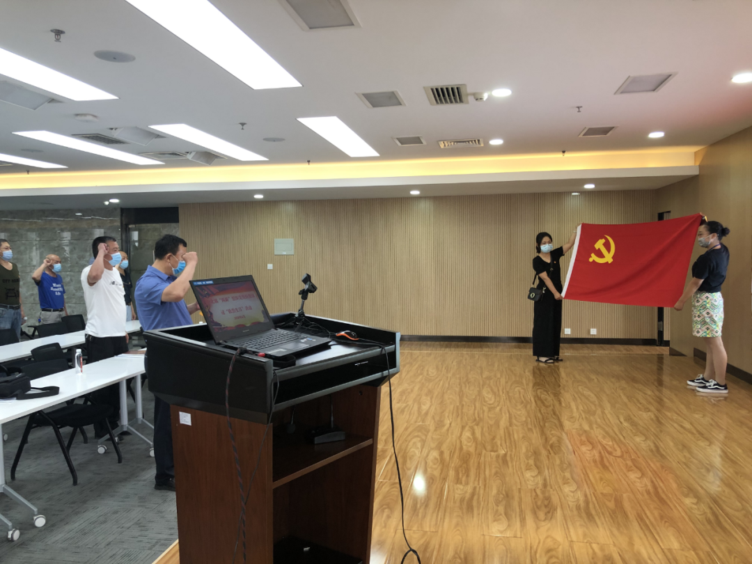 随后,在轮值书记的组织和带领下,全体党员面对庄严的党旗,共同重温入党誓词,在思想上再次经受了一次政治“洗礼”。铮铮誓言在此处回荡,在心中传承,时刻警醒党员们要终生不忘本源、不忘本性、不忘本真、不忘初心。