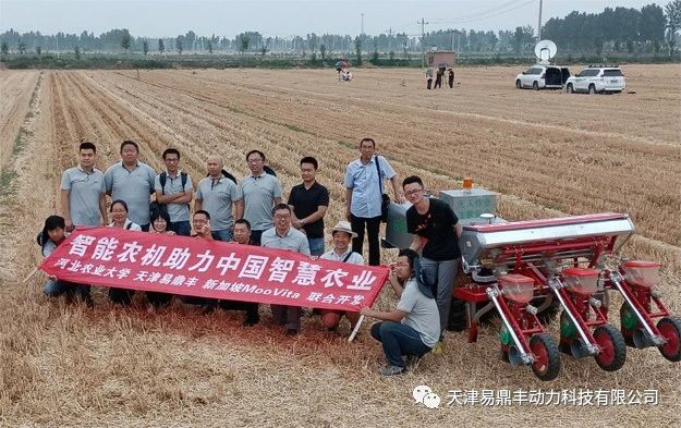 2020年6月23号,中国北斗三号全球卫星导航系统最后一颗组网卫星发射成功,中央电视台(CCTV)新闻频道进行了全程直播。直播中展示了北斗卫星在农机领域的应用场面,在河北农业大学辛集试验基地现场直播了由天津易鼎丰动力科技有限公司牵头,联合新加坡MooVita公司、河北农业大学共同研发的无人驾驶电动拖拉机 新型玉米单粒精量播种机现场作业实况。无人驾驶玉米播种机融合了增程电动、无人驾驶及作业控制、免耕精量播种等领先的核心技术,实现了播种作业的无人化、智能化和精量化。