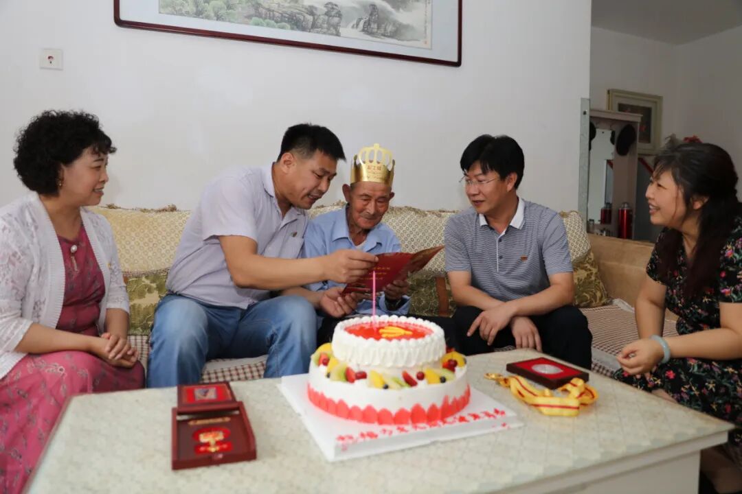 “今天是您的政治生日!73年前,您光荣地加入中国共产党,精武镇党委向您表示衷心的祝贺!”在中国共产党成立99周年之际,西青区精武镇党委书记向有73年党龄的老党员方文元同志送去生日祝福,和他一同庆祝党的生日。