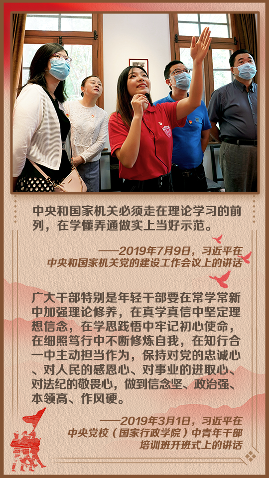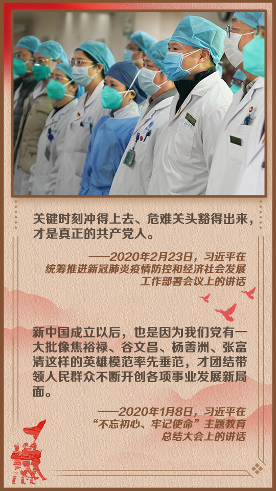 ![]() △2019年7月9日,中央和国家机关党的建设工作会议在北京召开,习近平出席会议并发表重要讲话。 一年前的7月9日,习近平总书记出席中央和国家机关党的建设工作会议,并发表重要讲话。这是党的历史上,第一次由党中央召开中央和国家机关党的建设工作会议。 把党的建设作为一项伟大工程来推进,是我们党的一大创举。勇于自我革命,从严管党治党,是我们党最鲜明的品格。 ![]() △2019年10月1日上午,庆祝中华人民共和国成立70周年大会在北京天安门广场隆重举行。这是群众游行中的“从严治党”方阵。 同年10月1日,《求是》杂志发表习近平总书记重要文章《推进党的建设新的伟大工程要一以贯之》。“一以贯之”是总书记对党的建设工作提出的明确要求。 当下,要克服新冠肺炎疫情影响、应对诸多不利局面,在一个更加不稳定不确定的世界中谋求发展,实现“两个一百年”奋斗目标,我们党必须勇于进行自我革命,把党建设得更加坚强有力。办好中国的事情关键在党。只有党的组织强起来,党员队伍强起来,党的工作强起来,才能凝聚起筑梦前行的蓬勃伟力。 ![]() 理论是行动的先导,思想是前进的旗帜。 中国共产党自成立之日起,历经艰难险阻,始终走在时代前列,首先靠的是正确的理论武装、先进的思想指引。思想建党始终是我们党不断从胜利走向胜利的重要法宝。 ![]() △《习近平谈治国理政》第三卷在2020年七一前夕出版发行,该书是马克思主义中国化最新成果的集中展示。 “‘欲事立,须是心立。’加强思想教育和理论武装,是党内政治生活的首要任务,是保证全党步调一致的前提。” “我们党是一个大党,统一思想历来不易。” “深入推进全面从严治党,必须把加强思想政治教育放在首位,教育引导党员、干部补足精神之‘钙’,筑牢思想之‘魂’。” 以习近平同志为核心的党中央准确把握党的建设规律,作出一系列强化思想政治教育的战略举措,开启了思想建党的新篇章。 ![]() △2018年5月9日,一位外国观众被北京“真理的力量——纪念马克思诞辰200周年主题展览”中一面展示不同国家出版的500多种《共产党宣言》的书墙所吸引。 理论创新每前进一步,理论武装就要跟进一步。 2020年1月8日,习近平在“不忘初心、牢记使命”主题教育总结大会上指出:“要把学习贯彻党的创新理论作为思想武装的重中之重,同学习马克思主义基本原理贯通起来,同学习党史、新中国史、改革开放史、社会主义发展史结合起来,同新时代我们进行伟大斗争、建设伟大工程、推进伟大事业、实现伟大梦想的丰富实践联系起来,在学懂弄通做实上下苦功夫,在解放思想中统一思想,在深化认识中提高认识,切实增强贯彻落实的思想自觉和行动自觉。” 中国共产党人依靠学习走到今天,也必然要依靠学习走向未来。 ![]() ![]() 6月29日,习近平总书记主持中共中央政治局第二十一次集体学习。他说:“安排这次中央政治局集体学习,既是庆祝党的生日的一次重要活动,也是为了推动全党深化认识并贯彻落实好新时代党的组织路线。” 组织建设是党的建设的重要基础。新时代党的组织路线为加强党的组织建设提供了科学遵循,为增强党的创造力、凝聚力、战斗力提供了重要保证。 “只要每个基层党组织和每个共产党员都有强烈的宗旨意识和责任意识,都能发挥战斗堡垒作用、先锋模范作用,我们党就会很有力量,我们国家就会很有力量,我们人民就会很有力量,党的执政基础就能坚如磐石。”习近平总书记这样语重心长地讲道。 在以习近平同志为核心的党中央带领下,在脱贫攻坚第一线、在改革发展主战场、在民生保障最基层,基层党组织成为促进经济社会发展、改善民生福祉的强大推动力。 ![]() ![]() 党员是党的肌体的细胞和党的活动的主体,党员队伍建设是党的建设基础工程。习近平总书记在党的十九大报告中强调:“党支部要担负好直接教育党员、管理党员、监督党员和组织群众、宣传群众、凝聚群众、服务群众的职责,引导广大党员发挥先锋模范作用。” ![]() △2020年6月30日,浙江台州市路桥区路南街道在路南街道中心小学举行“童心向着党、喜迎建党节”迎七一主题教育活动。 党员肩负着直接联系服务群众的责任,是宣传党的主张、贯彻党的决定、领导基层治理、团结动员群众、推动改革发展的主要战斗力量。加强党员队伍建设,能够稳固党的群众基础,进一步夯实党的执政根基。 ![]() △2020年3月14日,在广东省中山大学附属一院援助武汉医疗队驻地,24名医疗队队员面对鲜艳的党旗,高举右手庄严宣誓,成为光荣的中国共产党预备党员。 今年年初,一场突如其来的疫情防控阻击战,在中华大地骤然打响。在以习近平同志为核心的党中央坚强领导下,各级党组织和广大党员干部坚定信心、冲锋在前,把思想和行动统一到党中央决策部署上来,奋力投身疫情防控阻击战。 人们看到,在没有硝烟的战场上,一名名共产党员挺身而出,一个个战斗堡垒巍然矗立,鲜红的党旗在疫情防控一线高高飘扬。 ![]() 只要我们以习近平新时代中国特色社会主义思想为指引,坚定自信、保持定力、踏实前行,就一定能团结带领各族人民勇于战胜前进道路上的各种艰难险阻,以“赶考”的心态向党和人民交出一份满意的答卷! ![]() |
