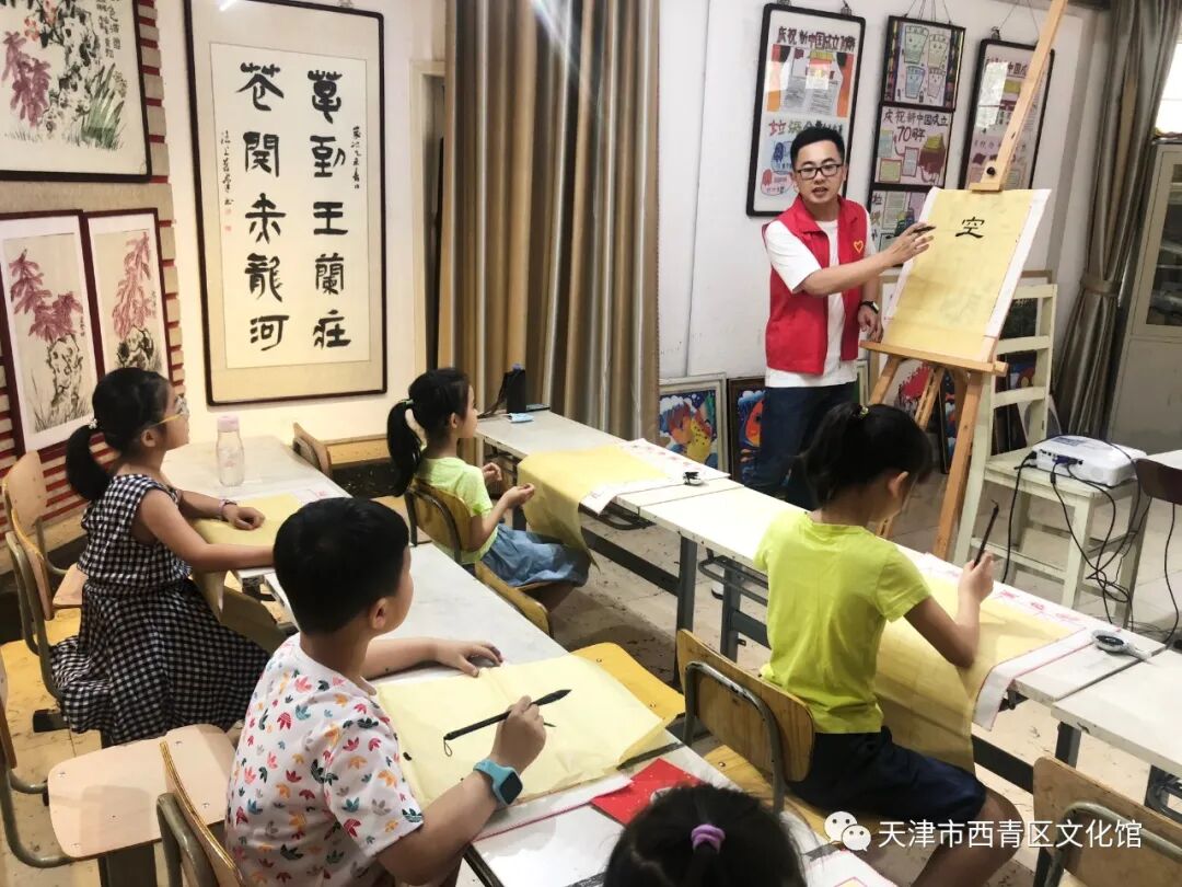 西青区王兰庄红领巾书画班成立于2014年,是王兰庄村联合西青区文化馆志愿服务队、王兰庄小学共同开设的,至今已有7年。今年的暑期班由区文化馆书法老师刘磊,以及文化志愿者侯郡、贾伟三位老师任教,进行了五天40课时的书法、美术教学。