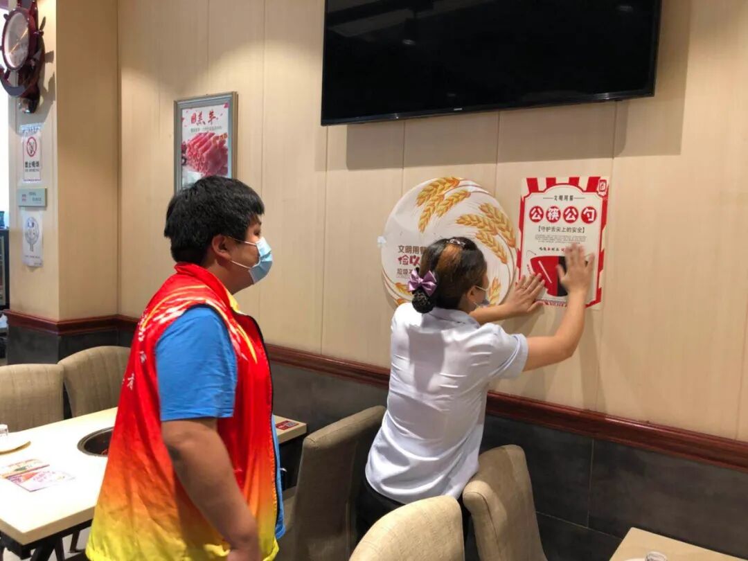 结合日常复工复产服务,精武镇“132”商业服务组分为9个片区、24个点位对全镇商贸领域进行宣传走访,重点对289家餐饮店铺张贴了宣传推广海报,配置了文明餐桌提示桌贴,号召广大餐饮从业人员积极落实“文明餐桌和公筷公勺”行动,提醒经营者要合法经营,加强自律,接受监督。