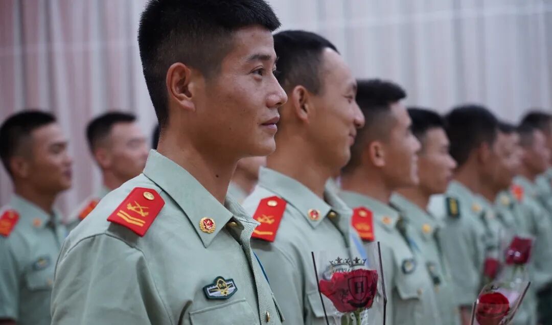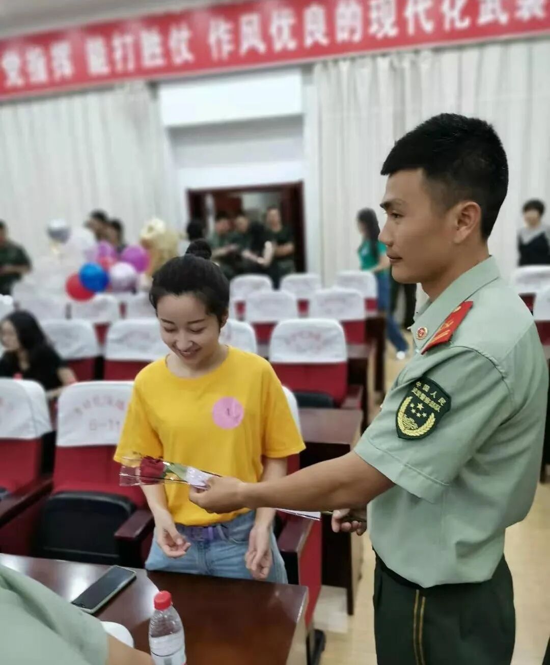 帅气的兵哥哥们在“一二一”的口号声中列队上台自我介绍,腼腆中透露着军人的自信。