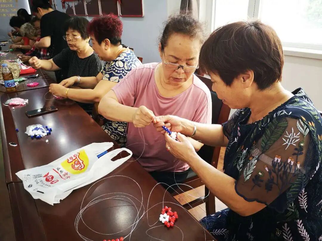 两个小时的时间在大家认真学习、忘我串珠的场面中很快过去了,在大家的努力下,每个人都完成了杯垫的编制,手里拿着自己串好的成品,心里别提多开心了。阿姨们一边穿一边说:“手工编织又动手又动脑,还能做出实用的东西,有了这个微家,我们就能一起学编织、做手工了。”