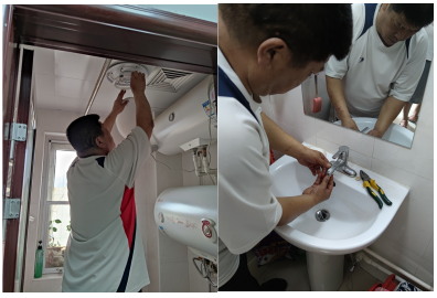 有维修经验的社区志愿者到社区居委会领取相关检修工具后,根据服务需求清单开展上门维修服务。鲍叔叔患有脑梗且一人独居,家中存在电线凌乱、洗手盆水管堵塞等问题,志愿者们帮助鲍叔叔整理了家中电线、疏通了水管,解决了他生活中的难题。么叔叔夫妻都患有脑梗,且孩子先天性智力残疾,生活十分困难,家中灯具损坏后长期失修,志愿者们帮助么叔叔更换电灯泡,使一家人能够在夜晚重见光亮。