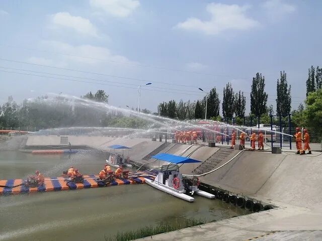 演练前,现场指挥部根据总队方案内容首先对集结车辆、随车器材和指战员个人防护装备进行了详细检查、逐项清点,对全体指战员器材使用掌握情况进行了现场抽查考核,组织对吸水、救生等装备进行了测试。随后,组织教练团队对冲锋舟的组装、驾驶操作技能等动作要领进行了现场培训。
