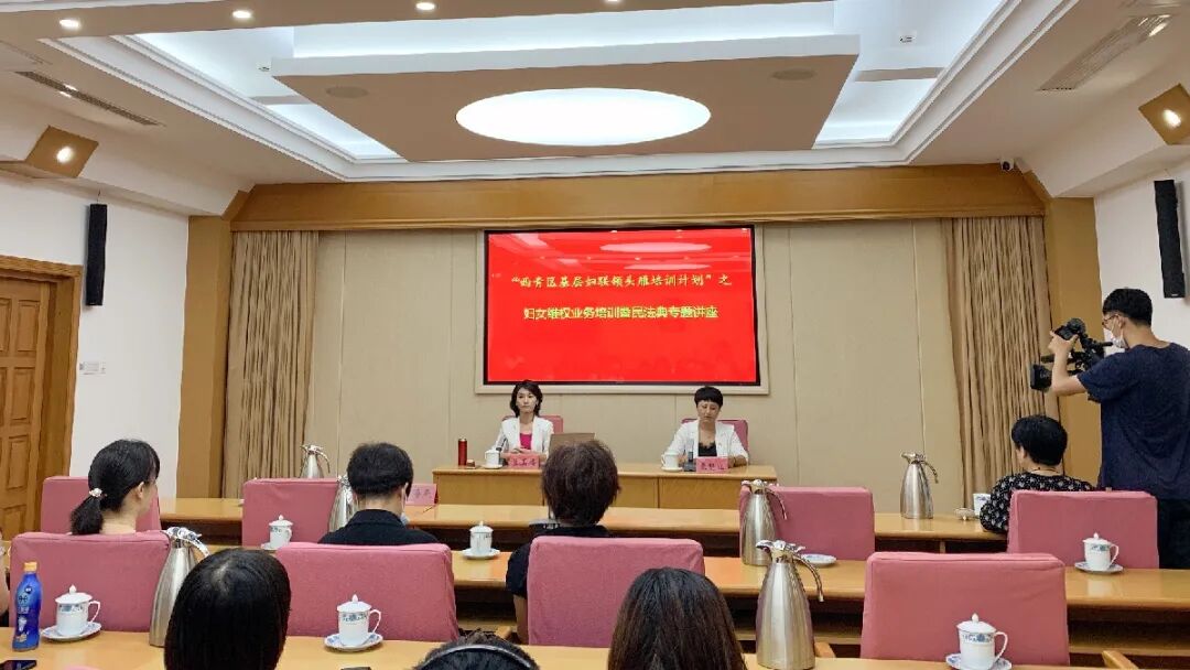 8月14日上午,西青区妇联举办了“基层妇联领头雁培训计划”第一讲之妇女维权业务培训暨民法典专题讲座,旨在提高妇联执委、妇女干部和志愿者的维权意识,进一步明晰维权职责,提高维护妇女权益能力。