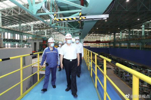 【习近平勉励马钢:在长三角一体化发展中把握机遇顺势而上】19日上午,正在安徽考察调研的习近平总书记走进中国宝武马钢集团优质合金棒材车间,冒着高温察看生产运行情况,并同劳动模范、工人代表亲切交流。习近平指出,在抗击新冠肺炎疫情过程中,马钢较早复工复产,实现了产量、营销收入同比双升,展现了国有经济的强大韧性。他勉励马钢在长三角一体化发展中把握机遇、顺势而上,特别是要把自身改革发展同长三角一体化发展有机结合衔接,力争在长三角一体化发展中不断发展壮大自己,也为长三角一体化发展作出自己的贡献。(文字记者:张晓松 摄影记者:鞠鹏 王晔 燕雁)