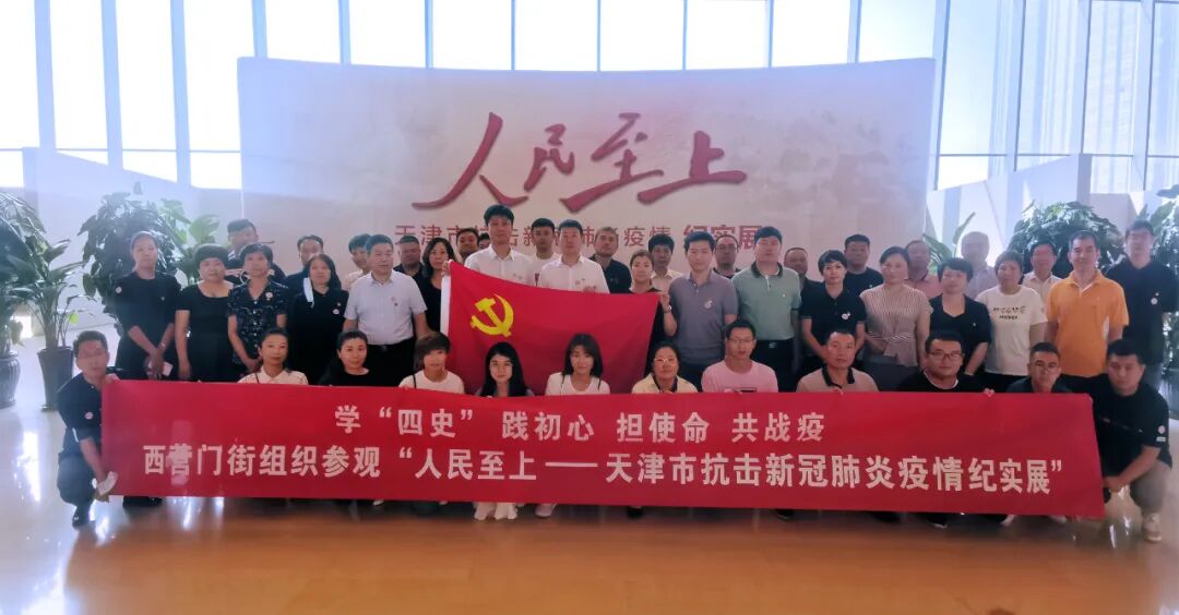 为进一步加强爱国主义教育,厚植爱国主义情怀,深入了解天津市抗击新冠肺炎疫情的艰辛历程,结合“四史”学习教育,激励全街党员干部向战“疫”英雄学习,9月4日上午,西营门街党政班子成员、村居党组织书记、科室负责人共50余人来到天津市博物馆集体参观“人民至上──天津市抗击新冠肺炎疫情纪实展”。
