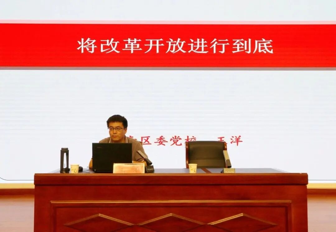 王洋老师主讲的题目是《将改革开放进行到底》,通过“改革开放以来我国取得的巨大成就”“选择改革开放的理论基础及现实依据”“改革开放以来的历史进程”“新时代下改革开放需要处理的几对关系”四个方面为全体党员干部上了一堂生动的党课,深入浅出,讲解透彻,对正确认识改革开放这一基本国策具有很强的指导作用。