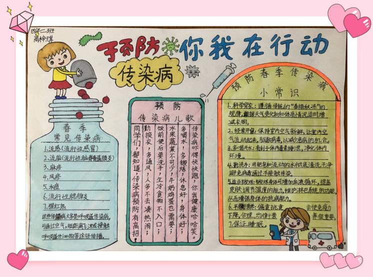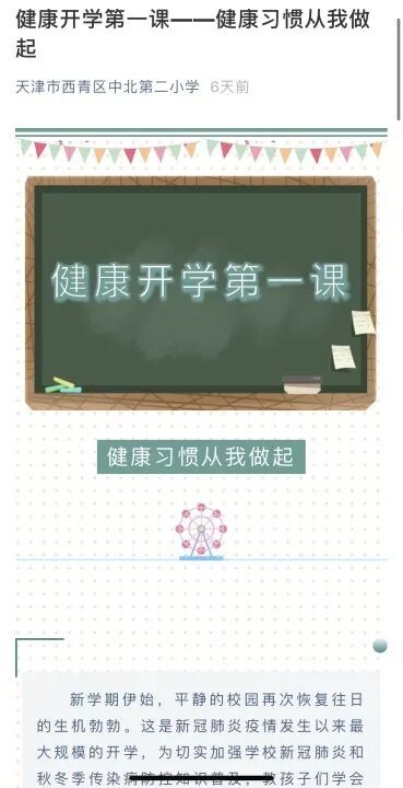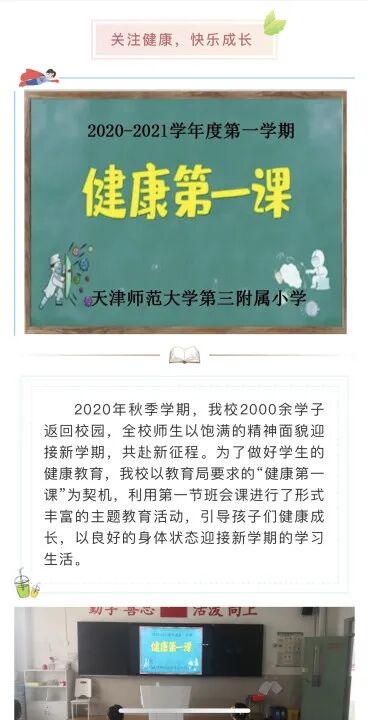 ![]() 今年9月,在全民抗疫的大背景下,全国大中小学及幼儿园学生将错峰回归校园。少年强,则中国强!健康第一课就是开学后保护学生健康的第一道屏障! 秋冬季易发生各类传染病,如诺如病毒感染、手足口病、流行性腮腺炎、流行性感冒、水痘……疫情期间传染病如在学校爆发,会给疫情防控工作带来更大挑战!那么该如何预防校园传染病的发生呢?我国是结核大国,新生入学结核筛查尤为重要,那么该如何进行筛查呢?眼睛是心灵的窗户,然而疫情期间,孩子户外活动减少,电子产品使用率上升,近视率大大升高!怎样做才能保护好视力呢? 西青区各校响应区教育局的号召,为减少秋冬季传染病、结核病、近视的发生,积极开展了丰富多彩、形式多样的“健康第一课”。一起来看看我区校园的健康第一课吧! 国旗下讲话,对全校师生宣传动员 ![]() ![]() 《健康第一课》主题班会 ![]() ![]() ![]() ![]() ![]() 小手绘出精美手抄报 ![]() ![]() 杨柳青二中年画社团孙伟老师指导学生所创作的“年画娃娃齐抗疫”作品,既发扬了抗疫精神又彰显了西青传统特色。 ![]() 多种形式科普知识宣传 ![]() ![]() ![]() ![]() 微信公众号科普宣传 ![]() ![]() ![]() ![]() ![]() ![]() 大手拉小手,学校联动家长共同呵护学生健康 ![]() ![]() ![]() 预防近视从我做起 ![]() ![]() 幼儿园的小朋友学会独立戴口罩 ![]() ![]() ![]() 习近平总书记说,“人民至上,生命至上,保护人民生命安全和身体健康可以不惜一切代价”。少年强,则中国强,每一位孩子都是祖国的希望,学校始终要把学生的健康摆在第一位,重视健康第一课,希望每一位家长和小朋友都身体健康! |