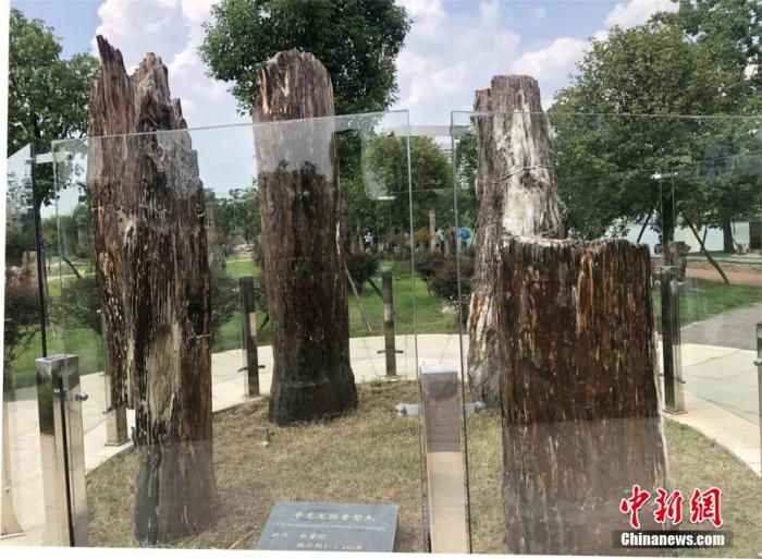 资料图:大约在1.5亿年前,树木被埋入地下,与空气隔绝,在漫长的地质作用过程中,木质纤维结构被二氧化硅替代,但枝干的外形保存下来,形成树化石。梁婷 摄