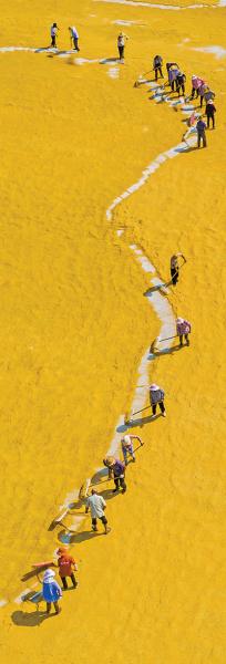 9月16日,甘肃省酒泉市肃州区三墩镇一处晾晒场,村民们在晾晒丰收的辣椒。 侯崇慧摄(人民视觉)