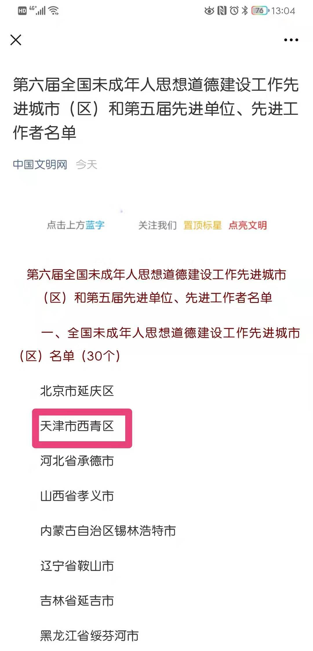 | 晒出成绩单!全国精神文明建设先进典型 西青区还有这些单位榜上有名! |