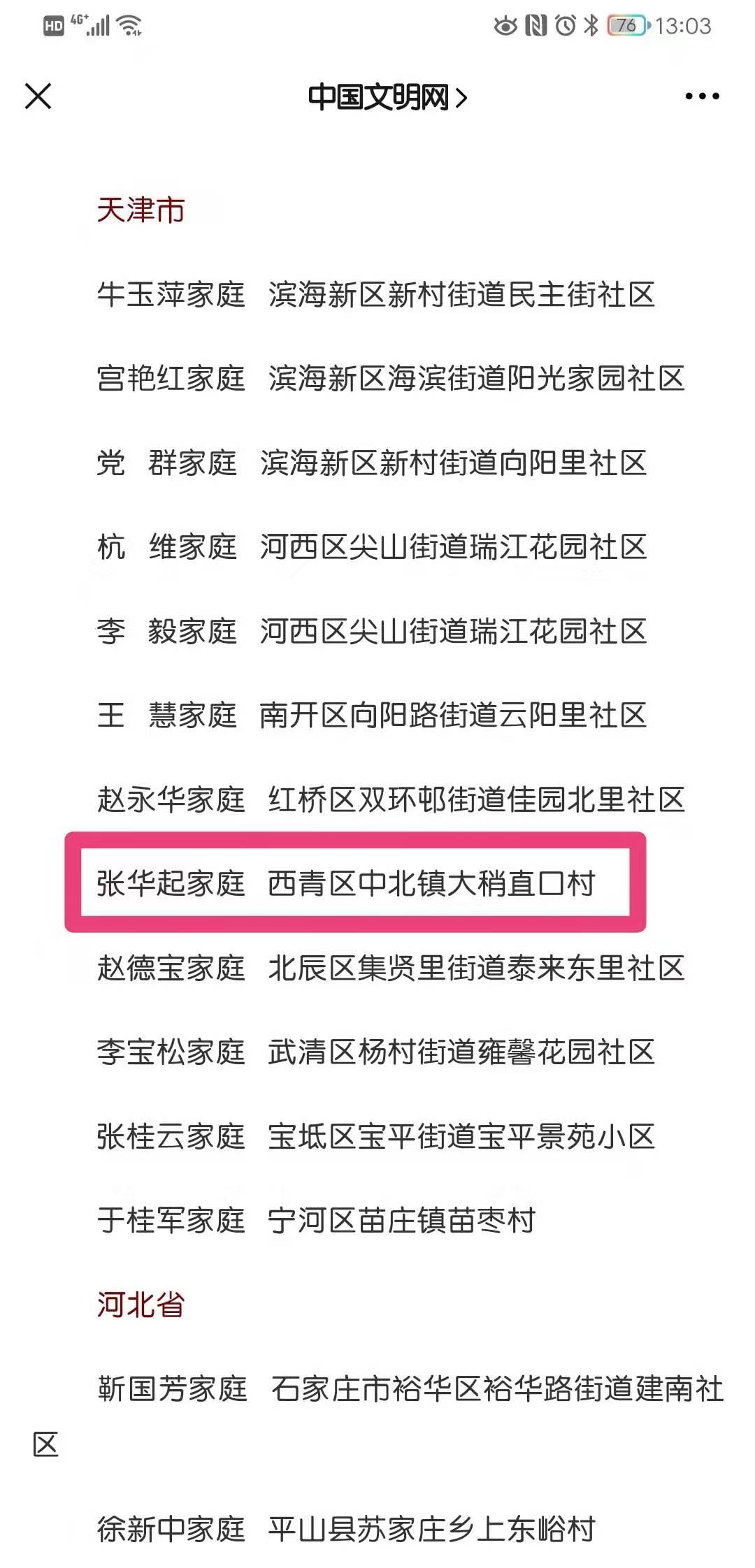 张华起家庭 西青区中北镇大稍直口村