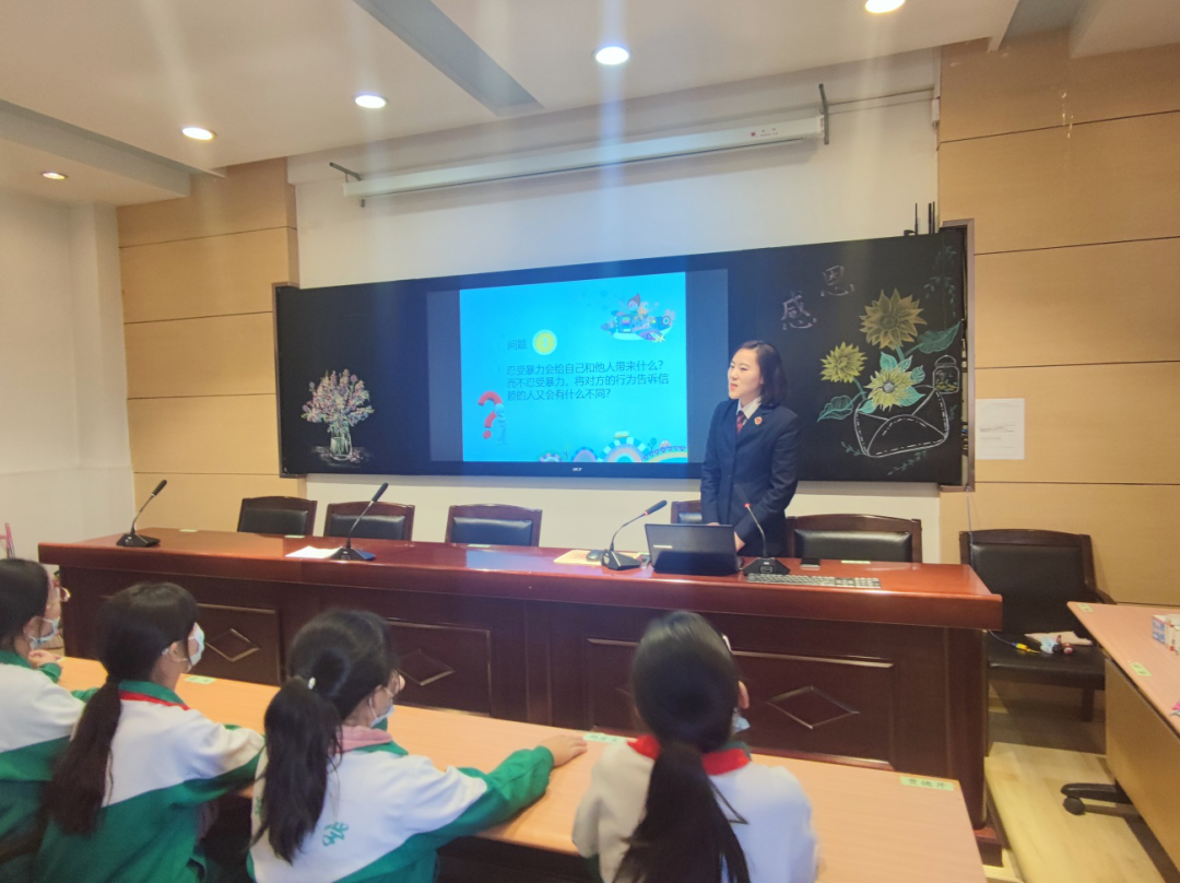 两位检察官以“远离暴力,创建平安校园”为主题做精彩讲座。讲座中提到校园是培养人的地方,是文明的殿堂,是孩子健康成长的一方净土!然而近年来,却时有暴力、欺凌事件发生。