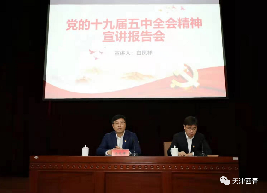 为全面深入学习宣传贯彻党的十九届五中全会精神,引导广大党员干部群众把思想统一到全会精神上来,把力量凝聚到实现全会确定的各项任务上来,日前,西青区委宣讲团成员、区委副书记、区长白凤祥到张家窝镇作宣讲报告。