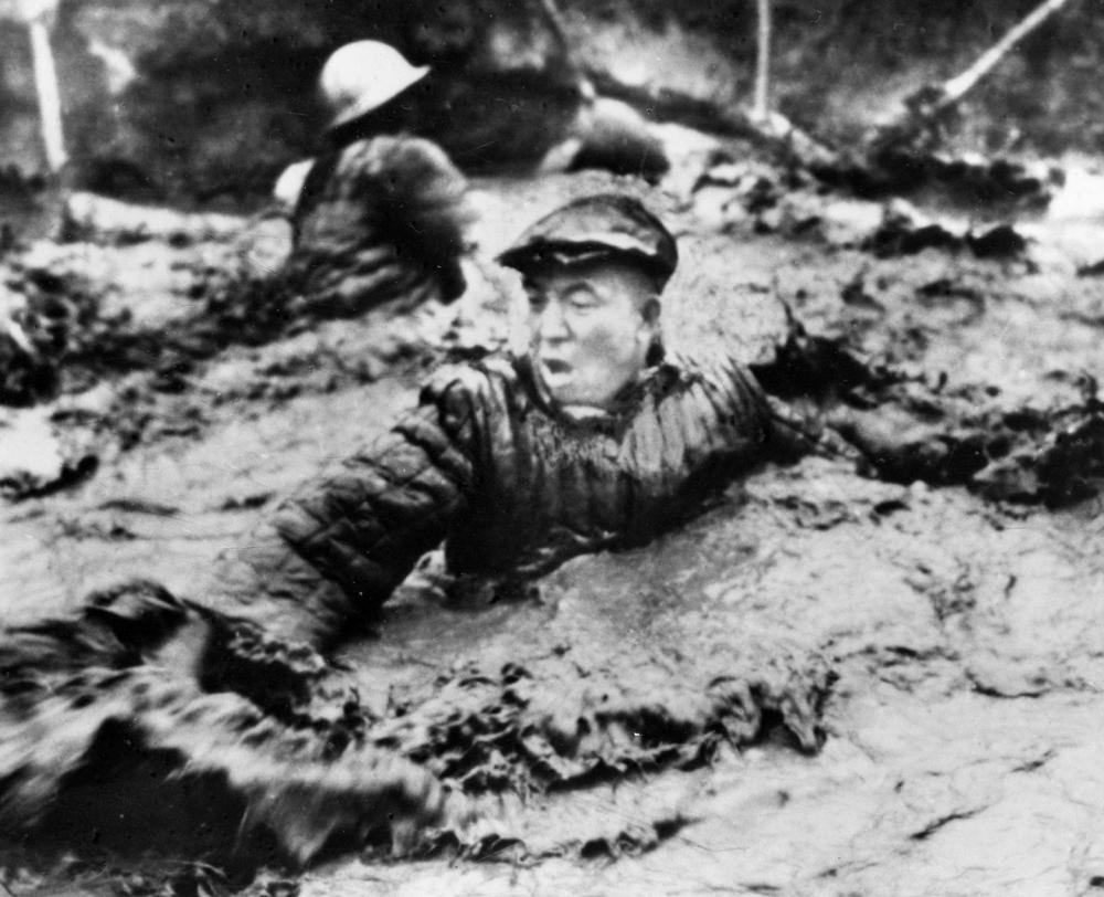△在石油大会战期间,王进喜冒着严寒跳进大庆的泥浆池,用身体搅拌泥浆,制止井喷,保住了钻井(资料照片)