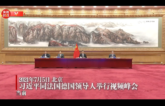 国家主席习近平5日晚在北京同法国总统马克龙、德国总理默克尔举行视频峰会。