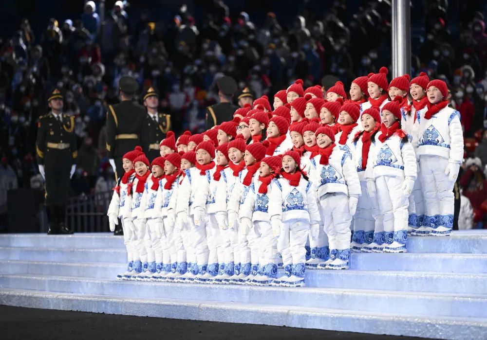 晚8时整,闭幕式准时开始。“开幕式中惊艳亮相的巨大‘冰面’地屏此时分外洁白、静谧,纯色的冬奥会徽‘冬梦’飘在冰面下,静待苏醒。雪花火炬悬浮空中,美丽的倒影投射冰面中央。”闭幕式总导演张艺谋阐释说,当音乐响起,一群可爱的孩子出现在舞台——他们手持雪花造型的花灯,在“冰面”上尽情嬉闹、舞蹈。随着表演进行,孩子们在不同位置用手中的小花灯点亮地屏上的“冬”字会徽。一时间,华灯盛照,暖意融融。 ![]() ▲2月20日晚,北京第二十四届冬季奥林匹克运动会闭幕式在国家体育场举行。这是开场“点亮”环节。新华社记者徐子鉴摄 “‘冬梦’从纯色冰晶幻化为斑斓的彩色,舞台和观众席上2万只灯笼立刻随之被点亮,闭幕式在一片绚烂灯火中拉开帷幕。”闭幕式导演沙晓岚说,“点亮会徽,既点亮了冬奥会的宗旨,也点亮了舞台、温暖了冬夜。” 相较于开幕式二十四节气倒计时的唯美、震撼,闭幕式登场的手持花灯的孩子更添灵动、活泼。闭幕式视效总监张玲玲透露,为完美呈现视觉效果,团队尝试冰冻了8立方米的冰块进行拍摄采集,对该环节的静态、动态测试达200多次。 “闭幕式与开幕式总体上一脉相承,有不少‘熟悉的陌生人’。”张艺谋举例说,在开幕式用希腊语演唱奥林匹克会歌的40多名河北阜平山区的孩子,在闭幕式现场再次登场表演。开幕式中,他们身着喜庆的红色衣服,闭幕式上,则改穿青花瓷样式的衣服,像一个个冰雪小精灵。“曾经生活在贫困山区的他们如今成功脱贫,这既体现脱贫攻坚的成果和共同富裕的决心,更表达冰雪冬奥‘更团结’的主题。” ![]() ▲2月20日晚,北京第二十四届冬季奥林匹克运动会闭幕式在国家体育场举行。这是孩子们演唱奥林匹克会歌。新华社记者鞠焕宗摄 开幕式中,“立春”表演环节的蒲公英从地屏翩然飞向天空、化作焰火的画面惊艳众人。“闭幕式上,类似的‘天地联动’再次呈现出别样的‘速度与激情’。”闭幕式分场导演赵栩可介绍,“颁奖仪式前,侧屏播放运动员摘金夺银、激情四射的精彩瞬间短片。短片结尾,一名高山滑雪运动员从坡上高速冲落,滑雪板飞出侧屏,随即滑至场地中央,实现雪板从空中到地面的‘无缝衔接’,而这块巨大滑雪板,就是颁奖台。” 为实现简约、高效,闭幕式基本沿用开幕式的道具、机械。闭幕式美术总设计李斌透露,地屏下的地舱是闭幕式各种“亮点”呈现的“魔盒”。“我们在开幕式进场前就提前沟通设计,开幕式一结束,只需将地舱进行模块化调整即可使用。这对各工种间的配合度提出了较高要求。”