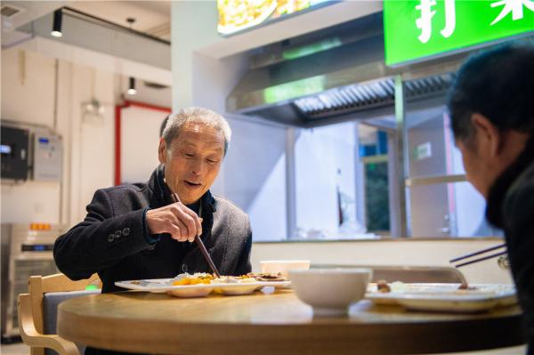 老人在湖南省常德市武陵区长者大食堂就餐(2021年11月16日摄)。
