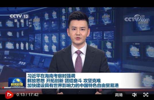 4月10日至13日,习近平在海南省委书记沈晓明、省长冯飞陪同下,先后来到三亚、五指山、儋州等地,深入科研单位、国家公园、黎族村寨、港口码头等进行调研。