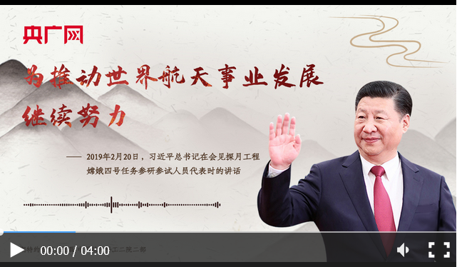 这段话出自2019年2月20日习近平总书记在会见探月工程嫦娥四号任务参研参试人员代表时的讲话。