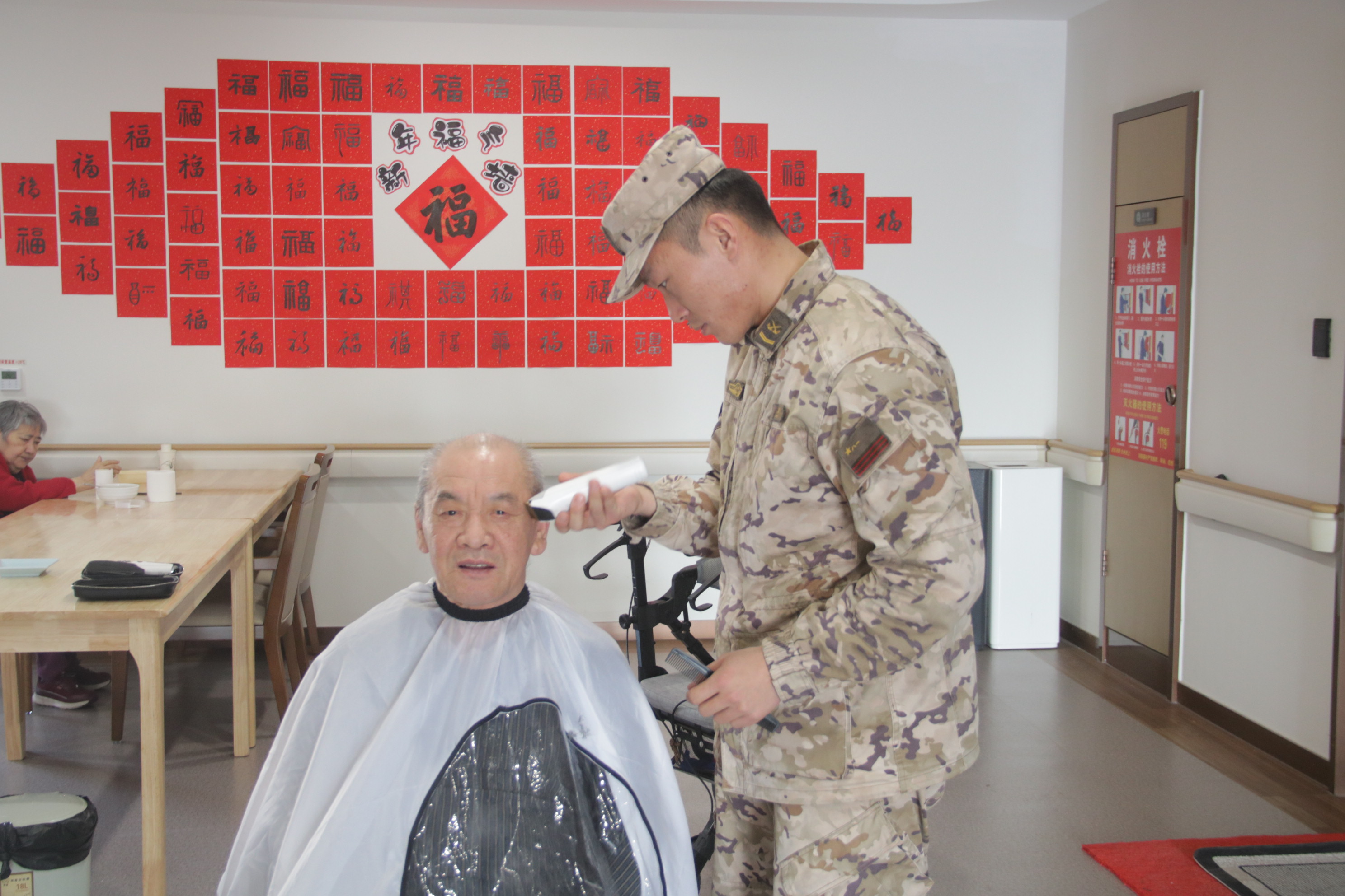活动当天,阳光和煦,暖意融融。官兵们整齐列队、精神抖擞地走进养老院,在简单分工后迅速投入到志愿服务中,现场一派忙碌而温馨的景象。
