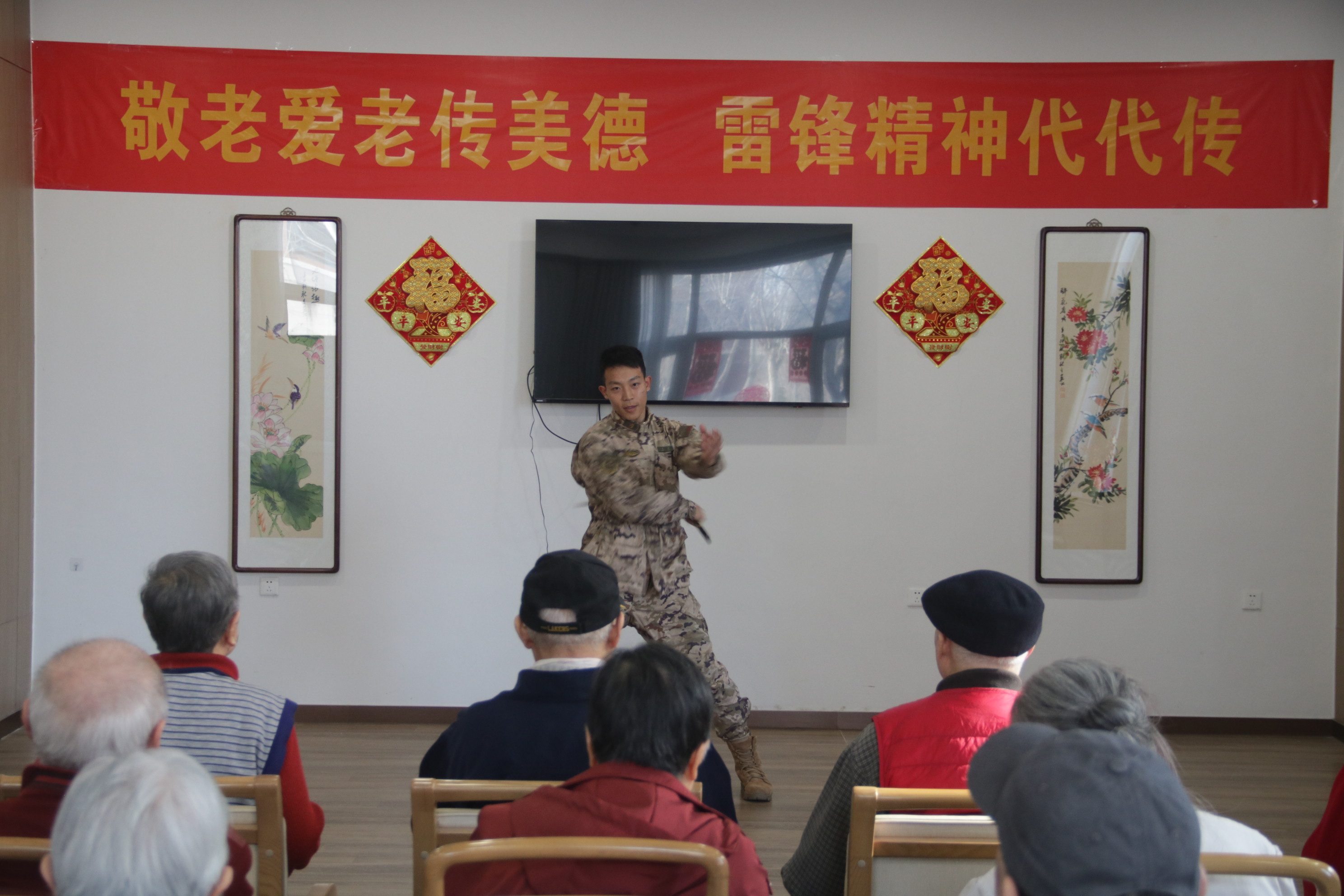 为深入弘扬新时代雷锋精神,传承敬老爱老传统美德,近日,武警驻津某部官兵走进西青区人寿堂养老院开展学雷锋志愿服务活动。官兵们以暖心服务传递军民深情,用实际行动践行初心使命,让雷锋精神在春日里绽放璀璨光芒。